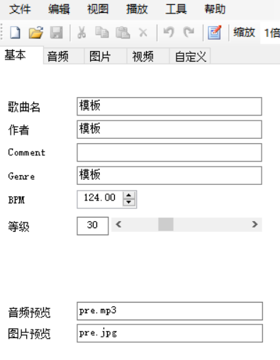 2、dtx文件内正确填写内容 使用曲谱编辑器打开 .dtx 文件编辑曲谱,在左侧基本信息框内,填写正确的内容